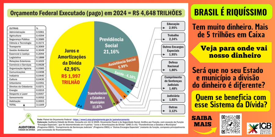A Auditoria Cidadã alerta, conforme nossos estudos. Não adianta somente tributar os ricos, se não houver a revogação dos limites para os investimentos sociais impostos pelo Arcabouço Fiscal (Lei Complementar 200/2023) e uma maior distribuição de renda.