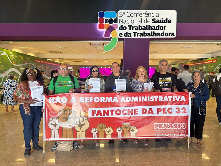 Na plenária final da 5ª Conferência Nacional de Saúde do Trabalhador e da Trabalhadora, realizada em Brasília, a FENASPS marcou presença com uma intervenção política importante: a entrega de uma carta aberta denunciando os efeitos nocivos da Reforma Administrativa sobre os serviços públicos e os direitos da classe trabalhadora.