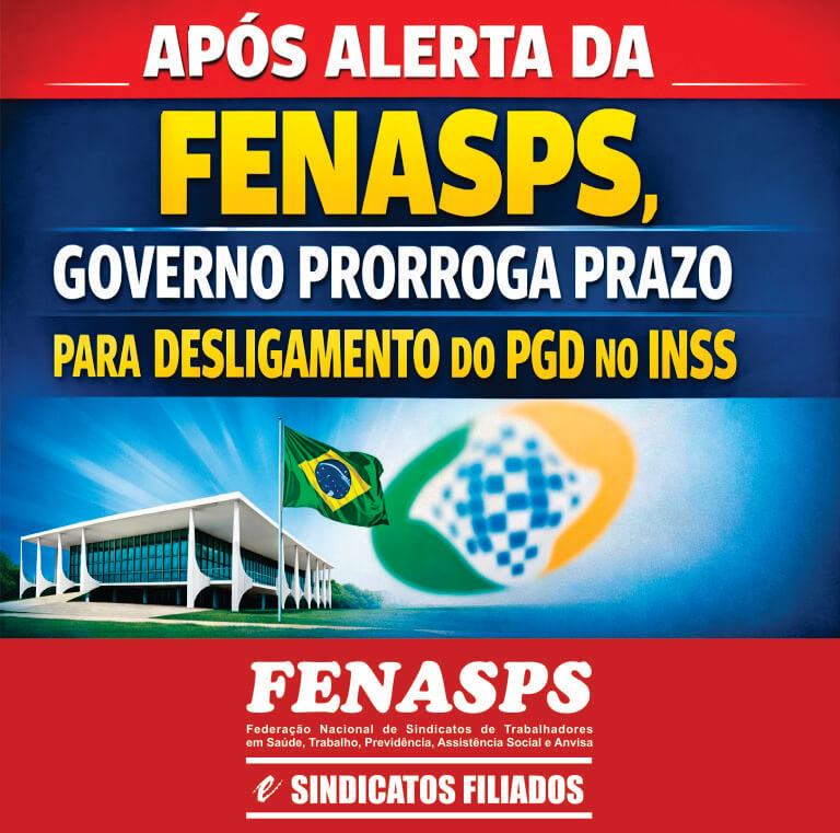 O direito de desligamento, com adesão voluntária ao PGD, são fruto da mobilização da categoria. Foi a pressão organizada dos trabalhadores, por meio da Fenasps e dos sindicatos filiados, que garantiu que o Programa não fosse mantido de forma compulsória.